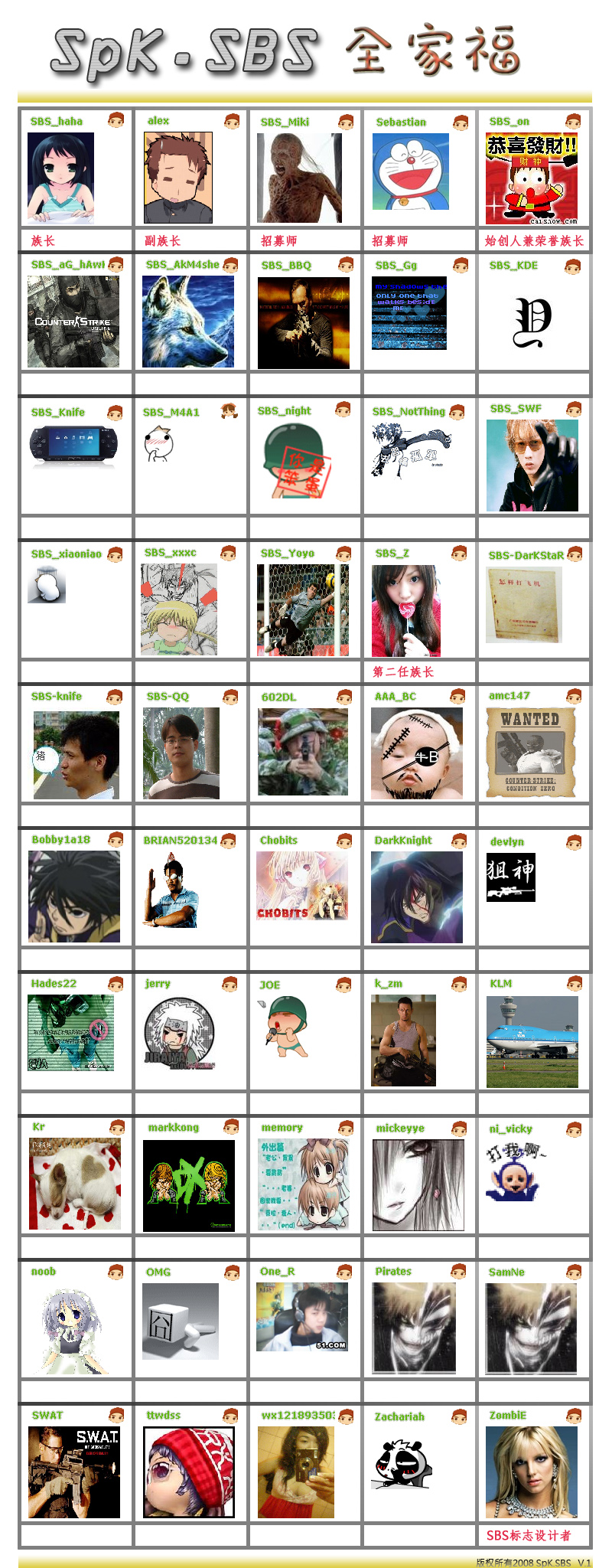| -- 作者:SBS_haha -- 发布时间:2008-08-30 21:23:00 -- [公告]SBS族谱展示 族谱展示 最新 曾经的族谱地址:http://www.sorpack.com/dispbbs.asp?BoardID=2&replyID=5239&id=25091&skin=0 [此贴子已经被作者于2008-8-30 21:30:56编辑过]