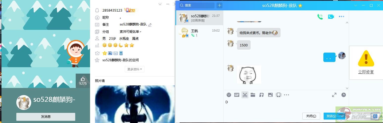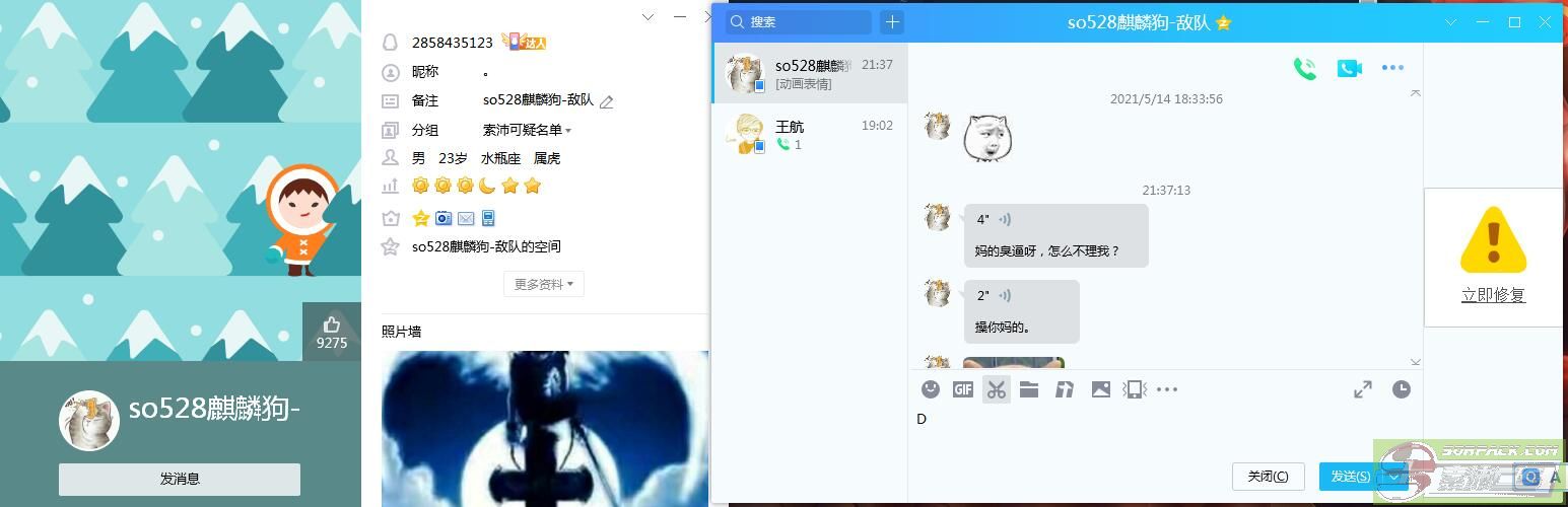 | -- 作者:guan_xige -- 发布时间:2021-05-15 21:46:00 -- so528给你们看看他丑陋的嘴脸 莫名其妙加我QQ跟我要1500索币,我没搭理,请问你娘滴个逼 我哪得罪你了?不就是没施舍给你索币吗,穷逼养的,嫩爹一个月就买4张21亿 2000块钱索币 你跟嫩娘的个逼我玩?什么小虾米 嘴真嫩娘滴个逼臭