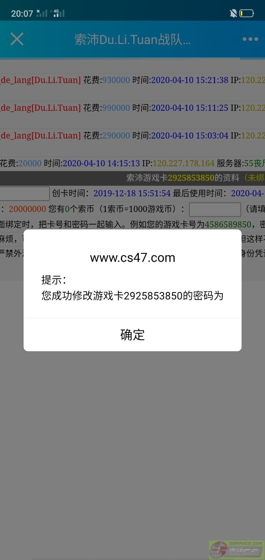 后来在打仗的时候 再问我要一张50的卡 当时 我去找哭色买了50的卡给他了
