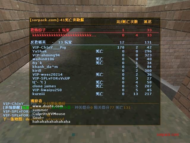 | 以文本方式查看主题 - 索沛CS1.6论坛 CS反作弊 CS1.6下载 amxx sma插件 cs对战平台 (http://5wgo.com/index.asp) -- 死亡奔跑服大厅 (http://5wgo.com/list.asp?boardid=45) ---- 我在4lifte地圖上最高的成績..@O@ (http://5wgo.com/dispbbs.asp?boardid=45&id=107232) |