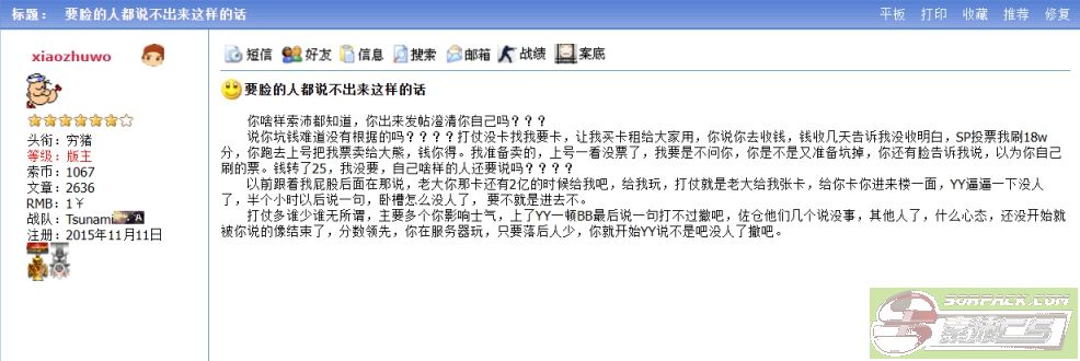 看到你们论坛这么激动我就放心了在论坛好好发挥,能来yy直接开帖,那几个喜欢开帖的 一句话,别装清高了 好好查内奸好吗,侦探探长