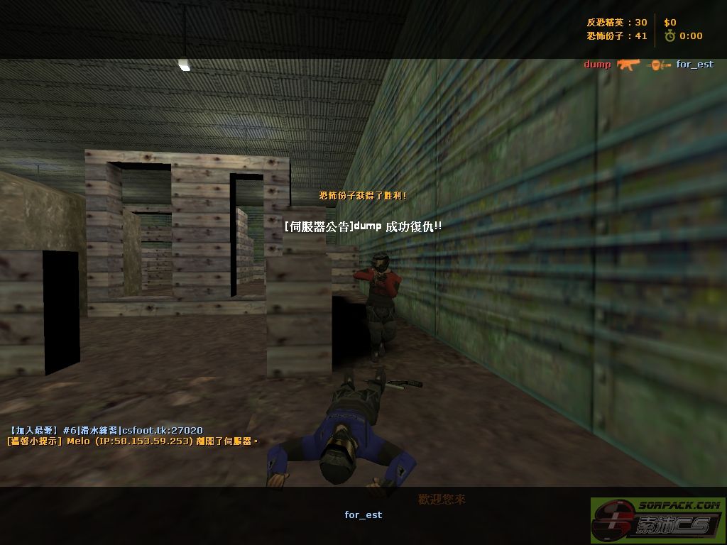 除了mp5 usp和9x9mm手槍外 另加m3 xm1014,scout,p90和刀 另外增加一個"超級發射器" 類似一粒不停爆炸炸彈 IP:#3漆彈大戰|IP: csfoot.tk:27037 另外還有4個ser #1監獄模式|IP: csfoot.tk:27035