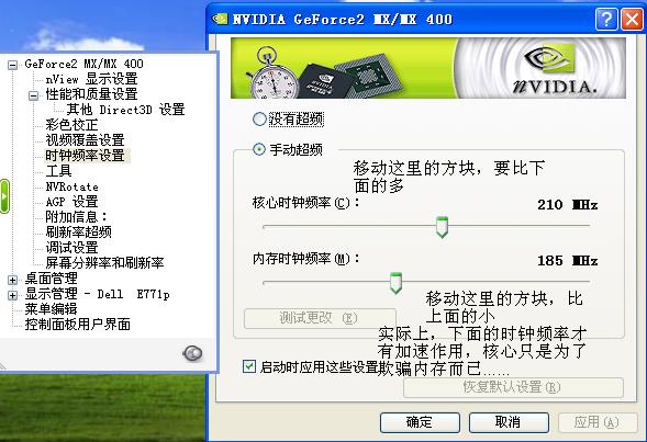 如果没有“时钟频率设置”,请安装NVTweak,并先看⑥,然后再返回这里。