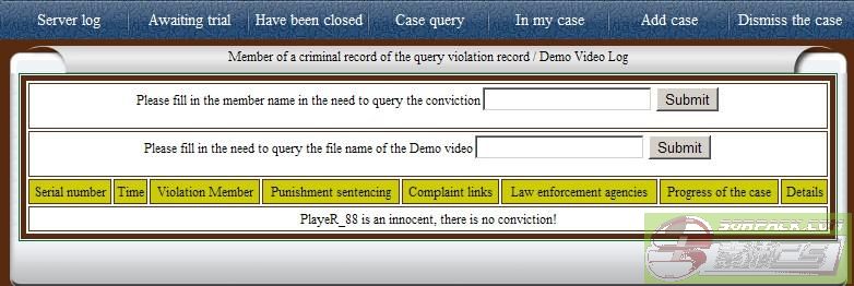 图片点击可在新窗口打开查看The last icon is Criminal record. A clean record will show  the list is empty and it will state that the member is innocent and has no conviction like in Figure 1.5. Here, you could also query on other members'  criminal record or Demo video by filling in the box, the members name or the name of the Demo video.