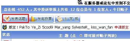 4. 打开论坛的 投诉举报 区, 点击'发表话题'