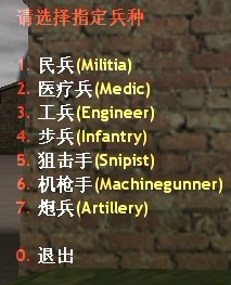 前25秒是选兵时间,按E后会出现兵种菜单,可任意选择自己喜爱的兵种