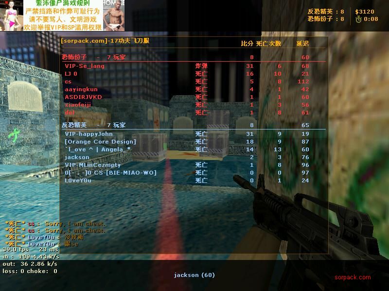 索沛CS1.6论坛 CS反作弊 CS1.6下载 amxx sma插件 cs对战平台 → → 功夫飞刀服大厅