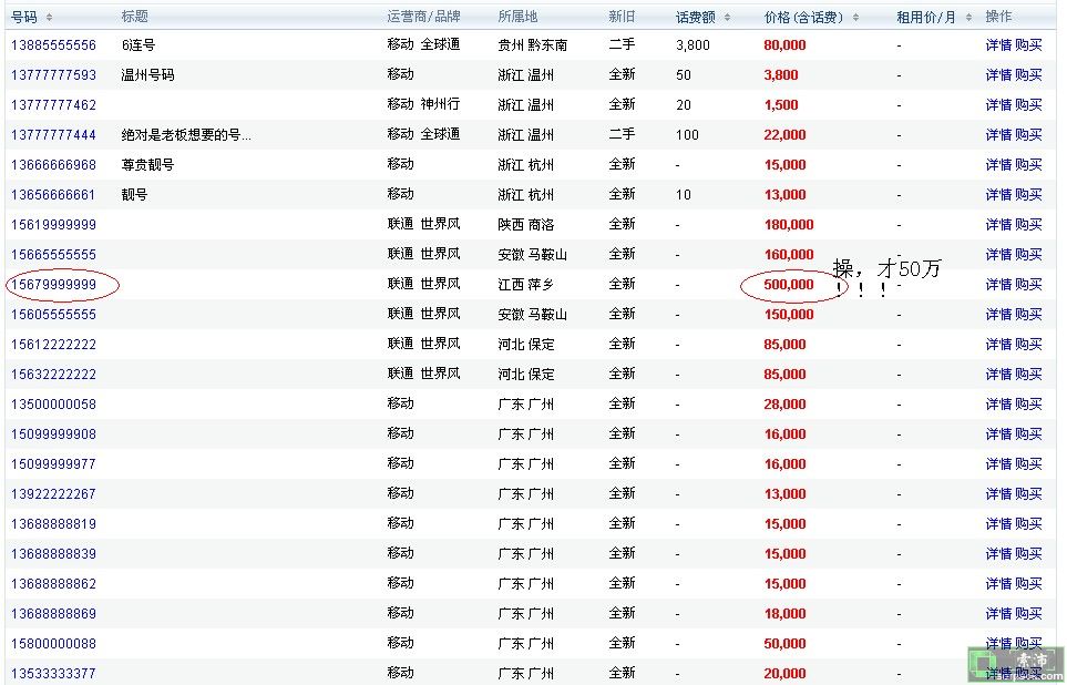 只能说变态,电话号码能卖这么贵。