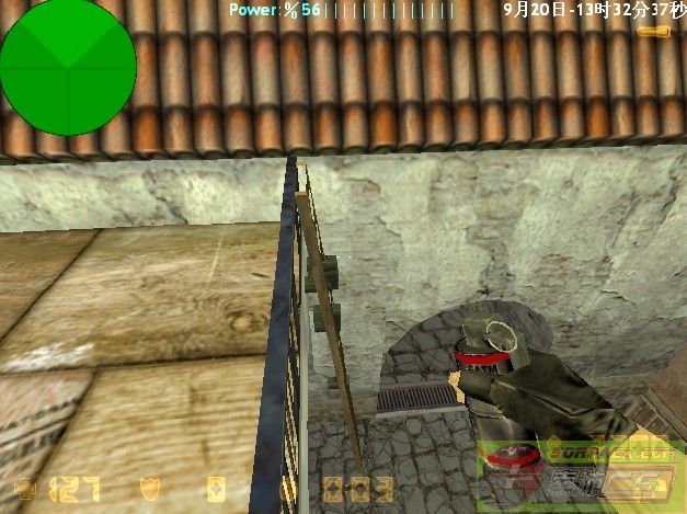 这是CT的一般跳位,大家都知道的啦,事先CT到那里时别出去,别让T发现,等T走过去时,听听有没有埋雷的声音,没有的话,就跳下去。