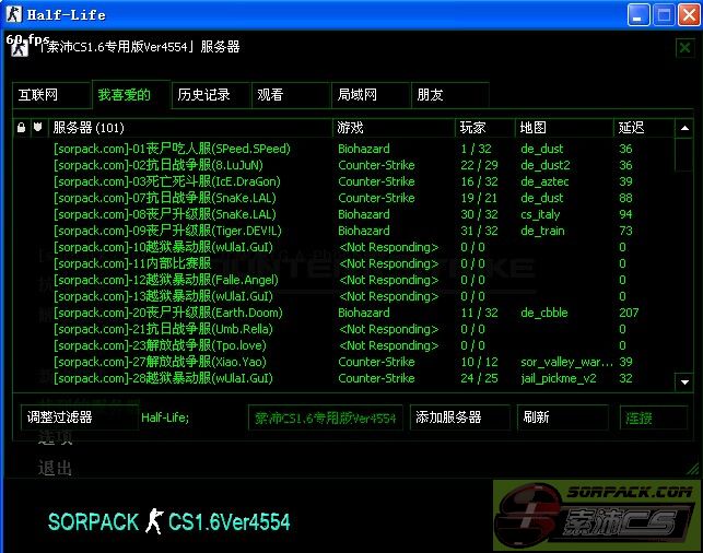 相信大家看到这个标题会有些疑惑,索沛cs的服务器列表不是有下载的么?但是,我发现下载的 索沛cs客户端4554版,里面有很多是没用的,而且我用了老大发的ServerBrowser.vdf文件添加进去了也没有用,如图:
