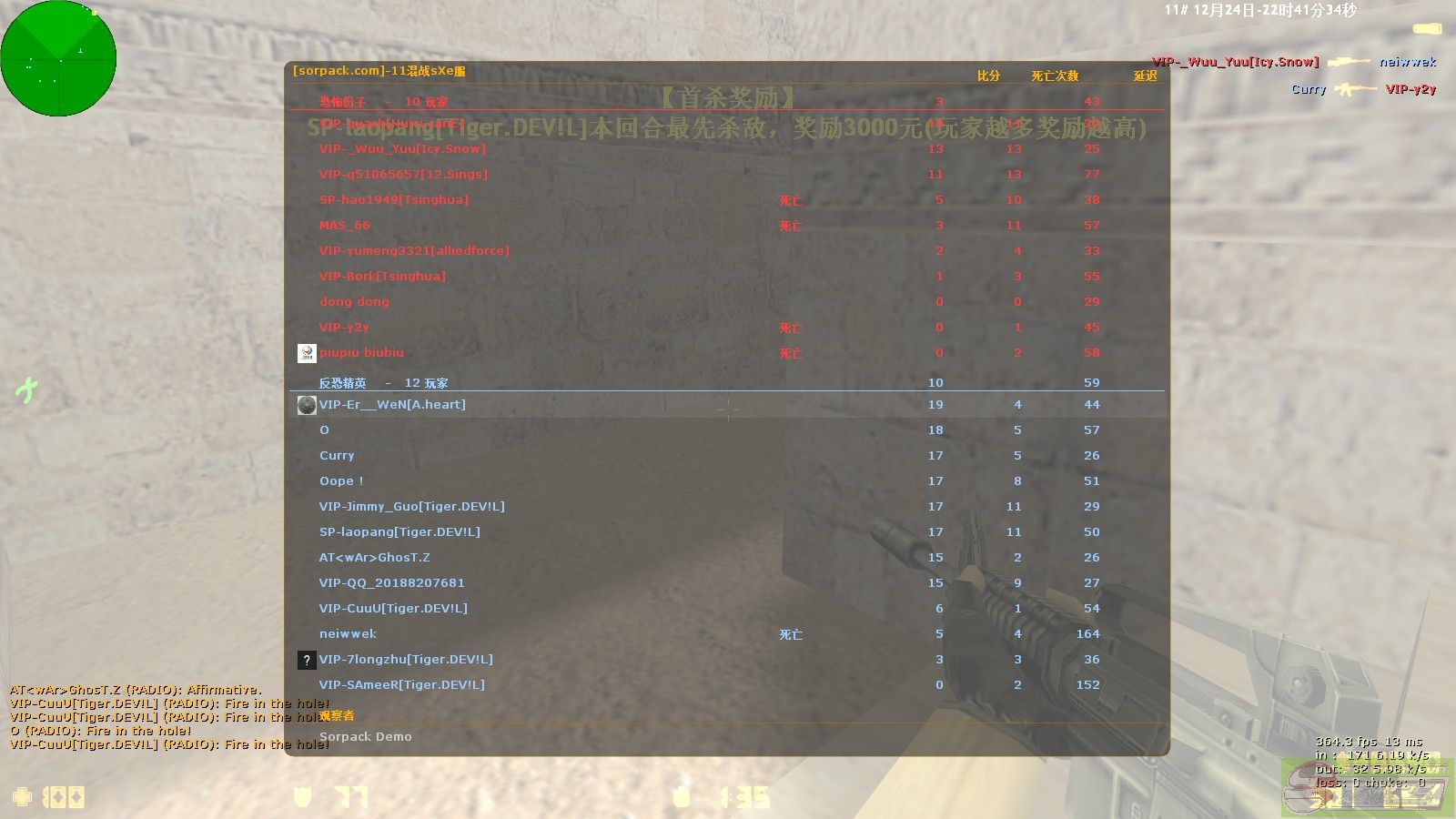 | 86 | 2018-12-24 22:11:00 | 【11混战sXe服】管理员SP-laopang[Tiger.DEV!L]把玩家Scout惩罚了5局[Demo] |