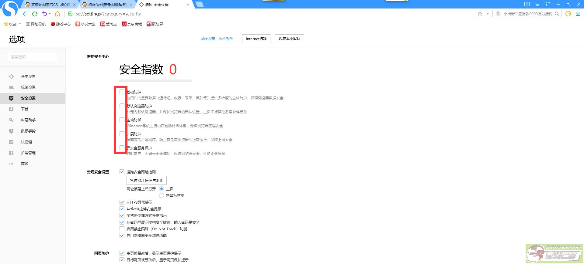 每个浏览器都有一个设置入口,找到安全选项把关闭掉即可