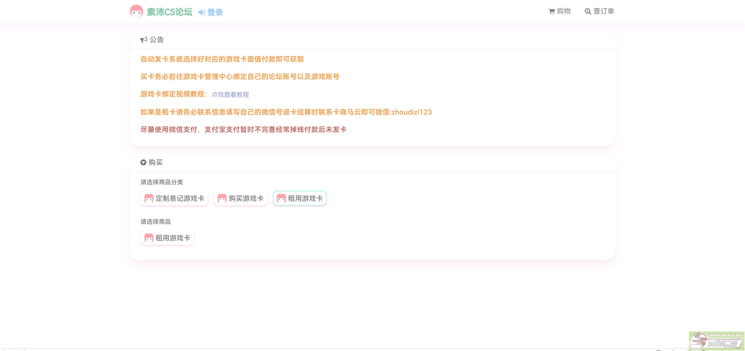 http://zfb.spcs.vip/由于论坛交易区无法支持微信支付,搞个发卡网弥补下这个缺口,同时支持在线租卡 后期再完善其他的吧