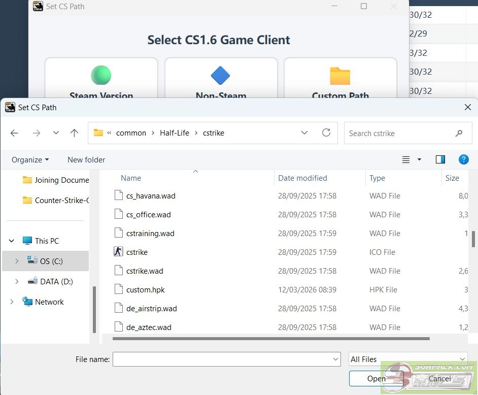 For most users, it is still the non-original CS1.6. You can choose the path on your computer by clicking Browse, then select and set the path to the hl.exe file.