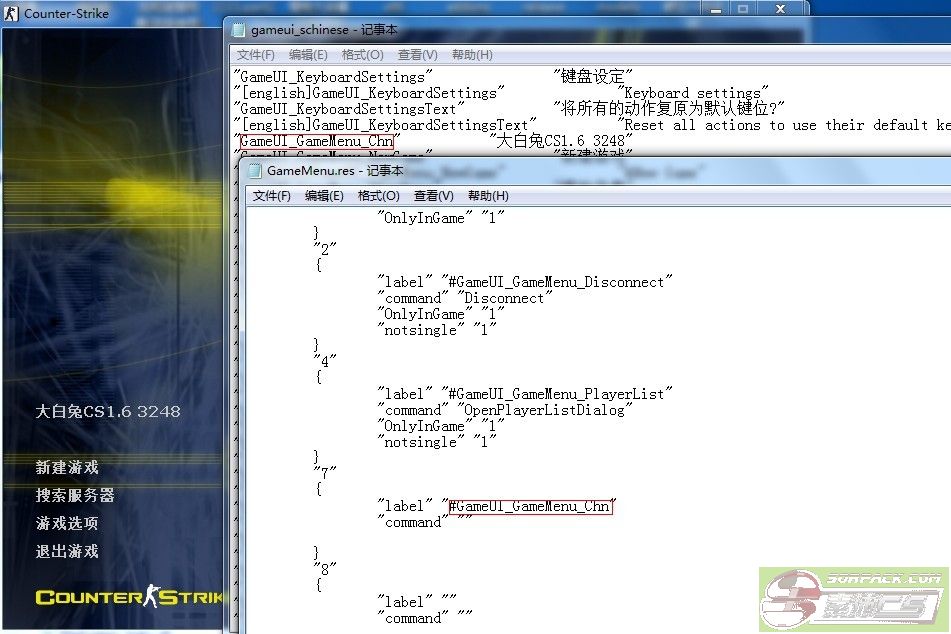 首先是2张txt,gameui_schinese.txt和valve\cstrike_schinese,看英文部分大家也该明白,gameui是什么意思客户端UI的字典,第二张是这个MOD