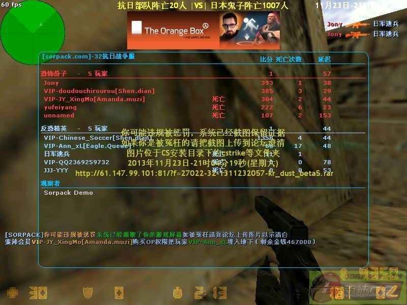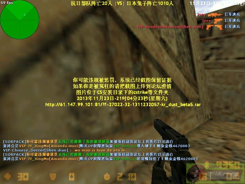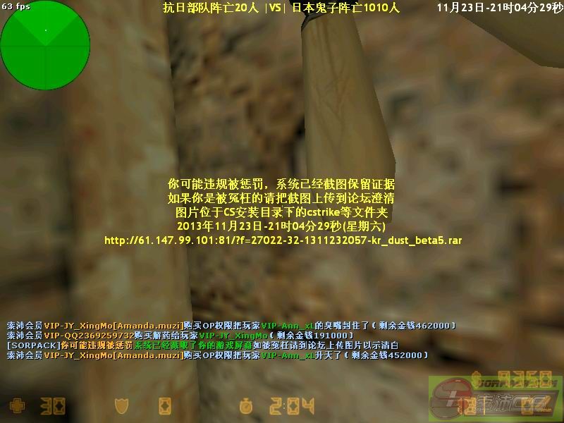 122013-11-23 21:03:00【32抗日战争服】会员VIP-Ann_xL[Eagle.Queue]购买OP权限把玩家VIP-JY_XingMo的臭嘴封住了[Demo]