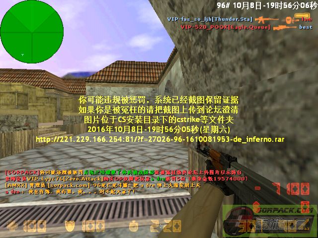 10月8日 晚上在96死斗服IP:s96.cs47.com:27026 被ID名字VIP-Lyyc76 Zero.Attack 购买权限给OP了,说我作弊(老是被我用AK打死)。