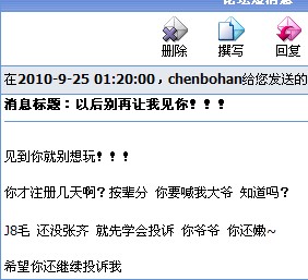 短信内容已经发了,我真是佩服死这个人了,自己水平不行,买轻功抓不到我就OP我,投诉他,他还威胁我