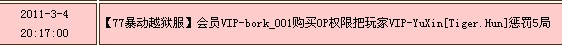 【77***越狱服】会员VIP-bork_001购买OP权限把玩家VIP-YuXin[Tiger.Hun]惩罚5局