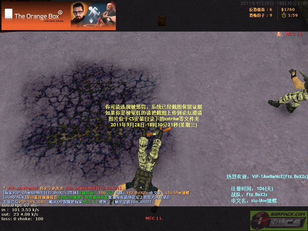 32011-9-28 18:30:00【34混战比赛服(Ftz.BoX2s)】会员VIP-SPK_SBS_购买OP权限把玩家MCC | L处死了