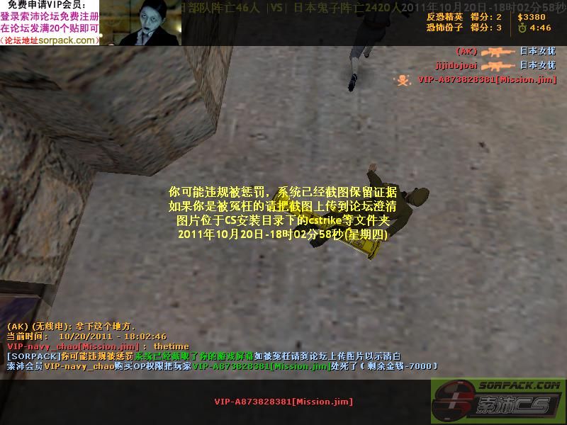 【07抗日战争服(Mission.jim)】会员VIP-navy_chao购买OP权限把玩家VIP-A873828381[Mission.jim]处死了