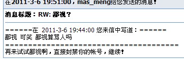图片点击可在新窗口打开查看    短信而且还说:试试鄙视啊,直接封禁你的帐号。 是谁封帐号? 自己慢慢想把 想你这样  投诉区版主你肯定 会被撤的 放心把