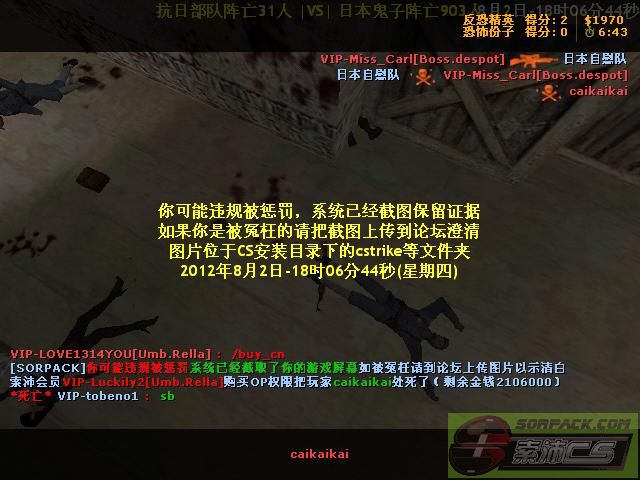 1080 2012-8-2 18:07:00 【07抗日战争服(Umb.Rella)】会员VIP-Luckily2[Umb.Rella]购买OP权限把玩家caikaikai处死了