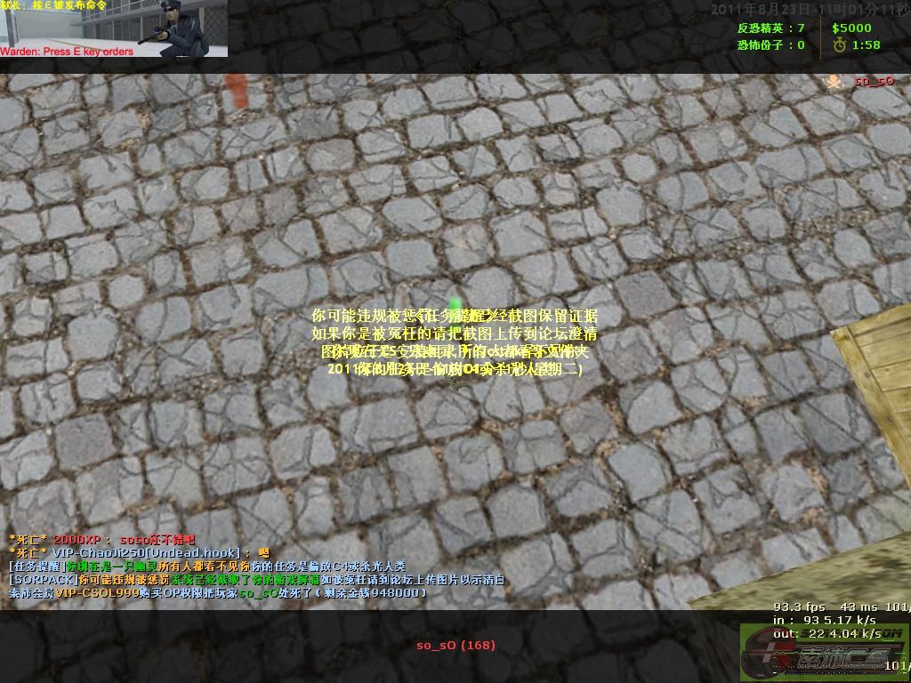 272011-8-23 10:49:00【15幽灵暗杀服(Undead.hook)】会员VIP-CSOL999购买OP权限把玩家so_SO处死了
